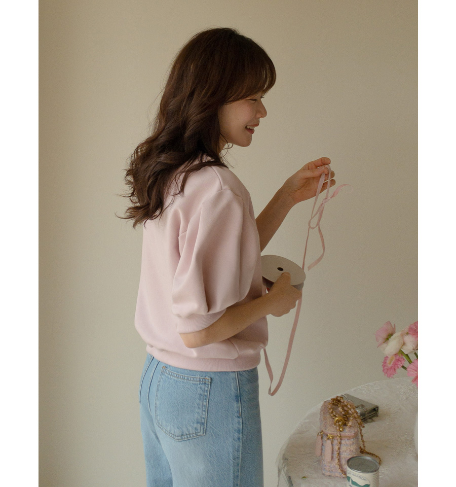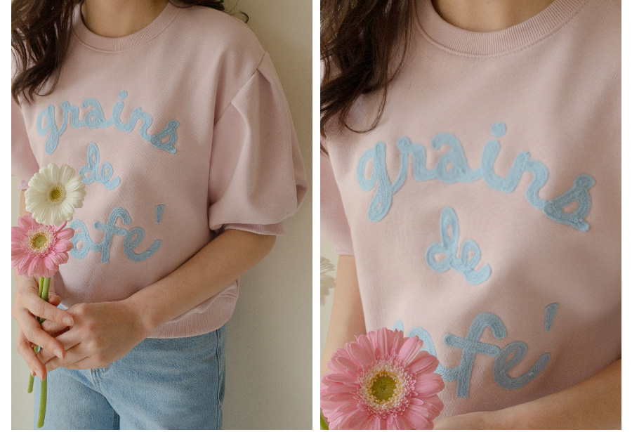 HOME > ALL > 로아니 자수 퍼프 반팔 맨투맨 [Free(55~66)]