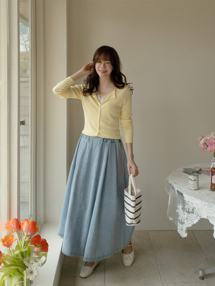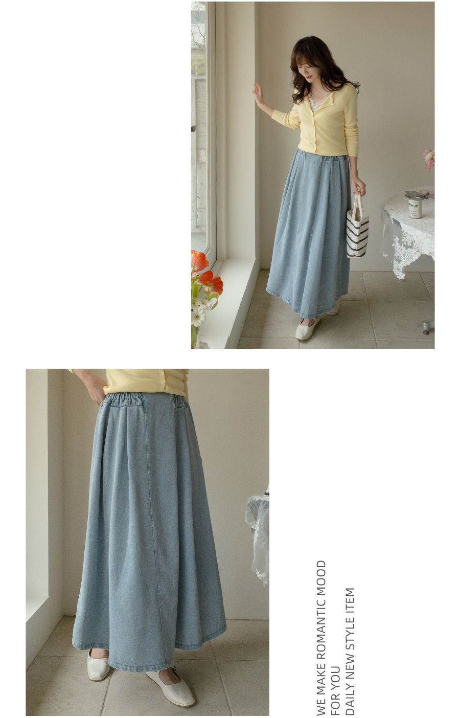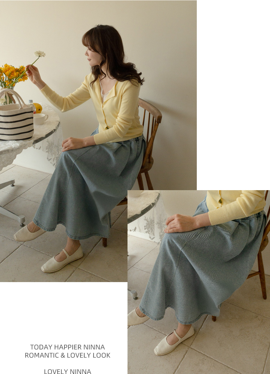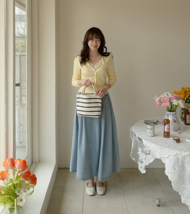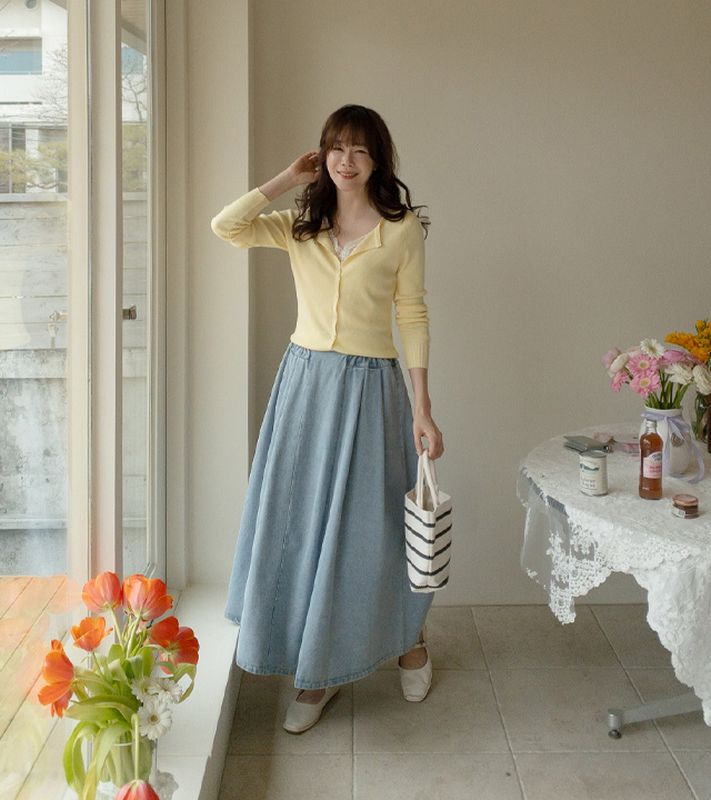 동시에 잡아준 데님 롱 스커트예요.