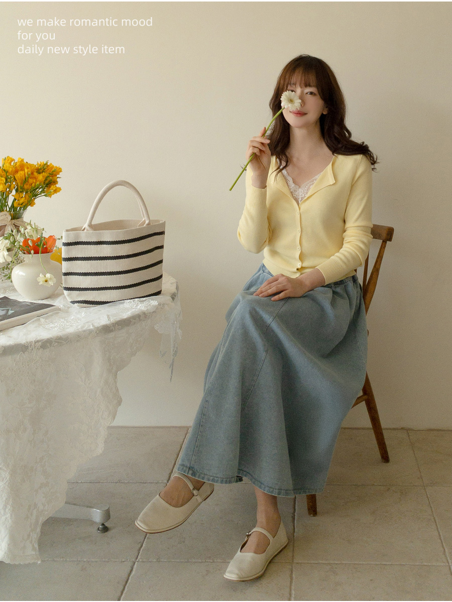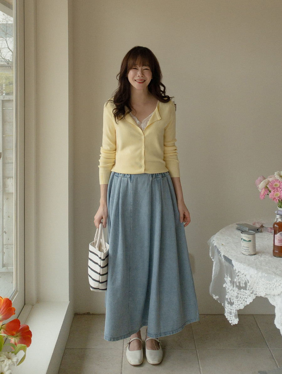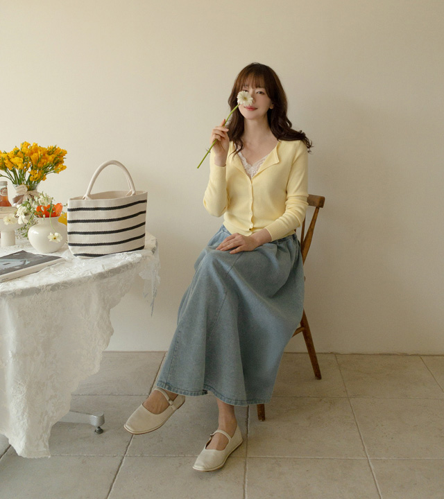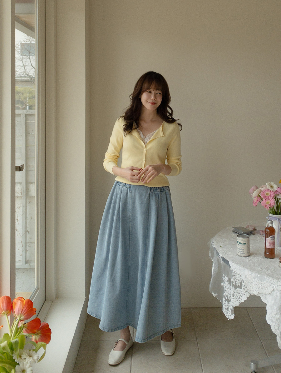 동시에 잡아준 데님 롱 스커트예요.