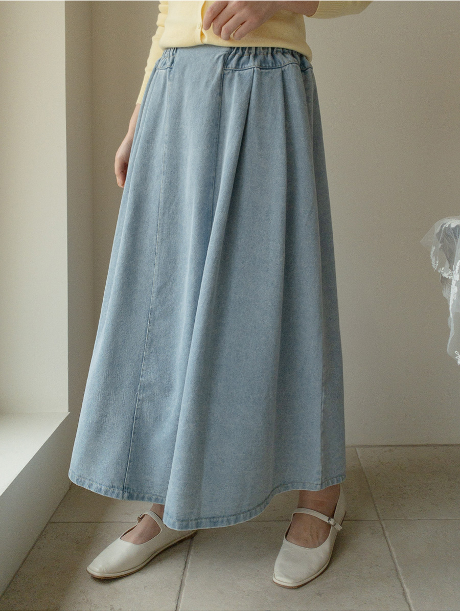 데이브 핀턱 스모크 밴딩 데님 롱 스커트 [Free(55~66)]
