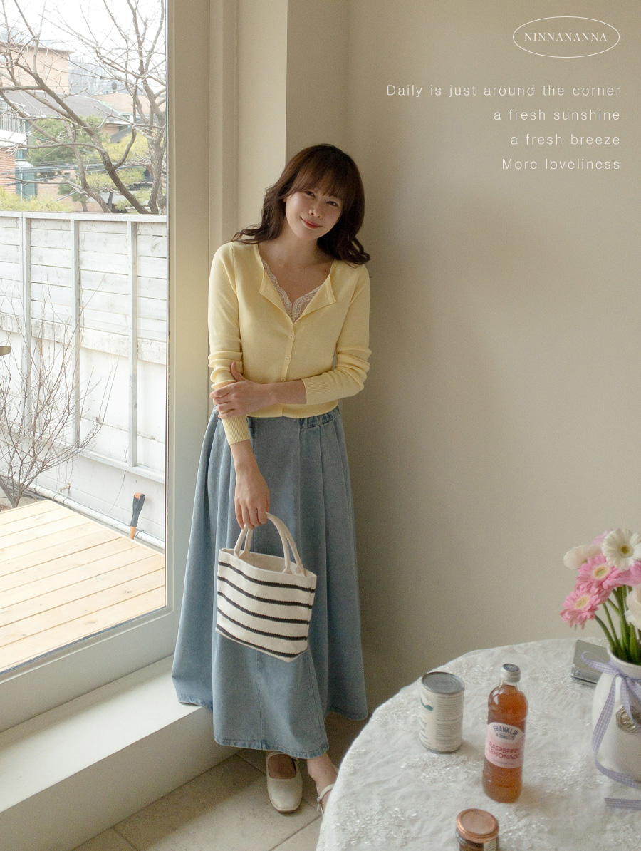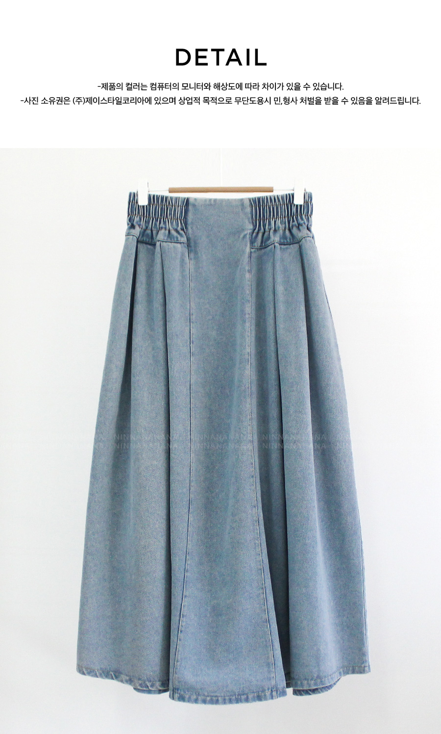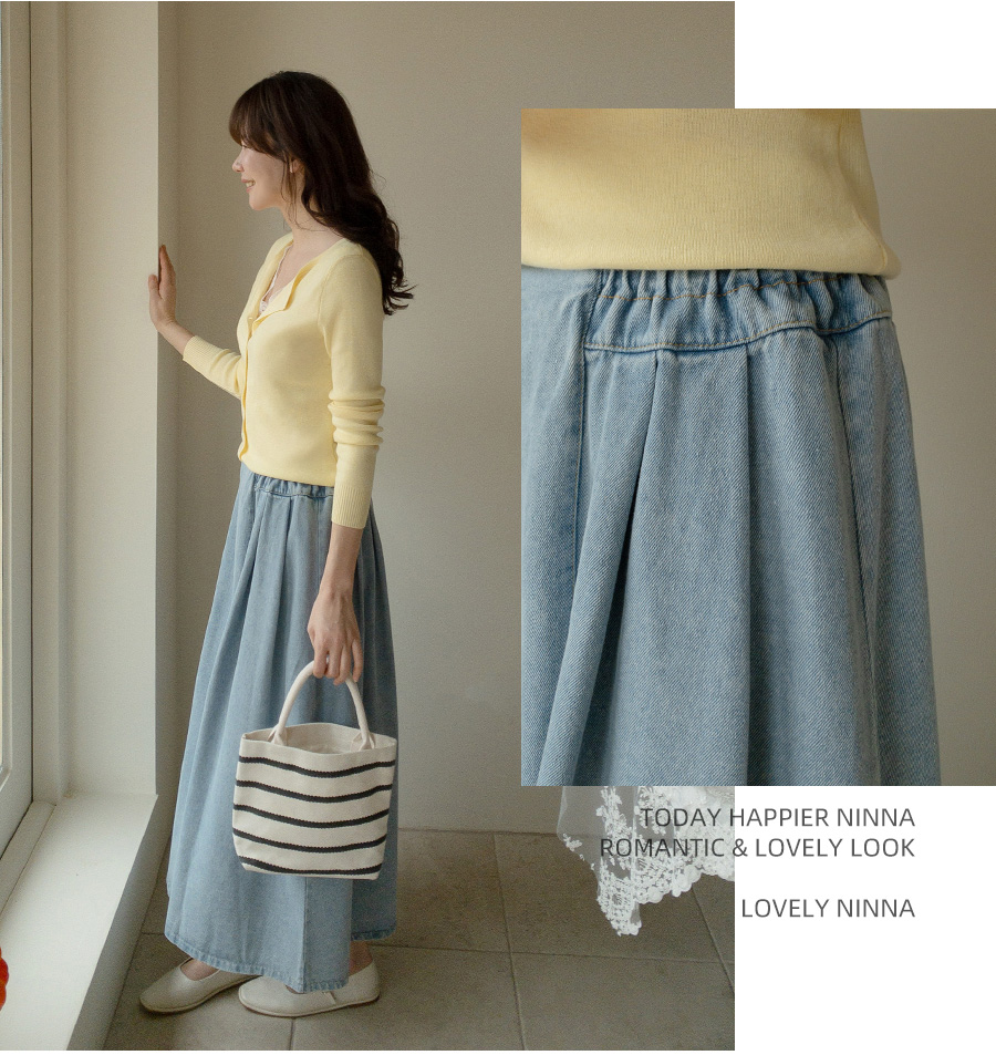 양 사이드 밴딩으로 편안함은 살리고, 볼륨감 있는 핀턱 A라인으로 여성스러운 데님 스커트^^