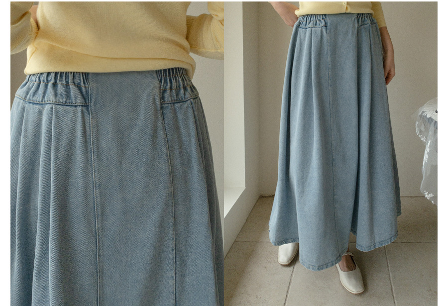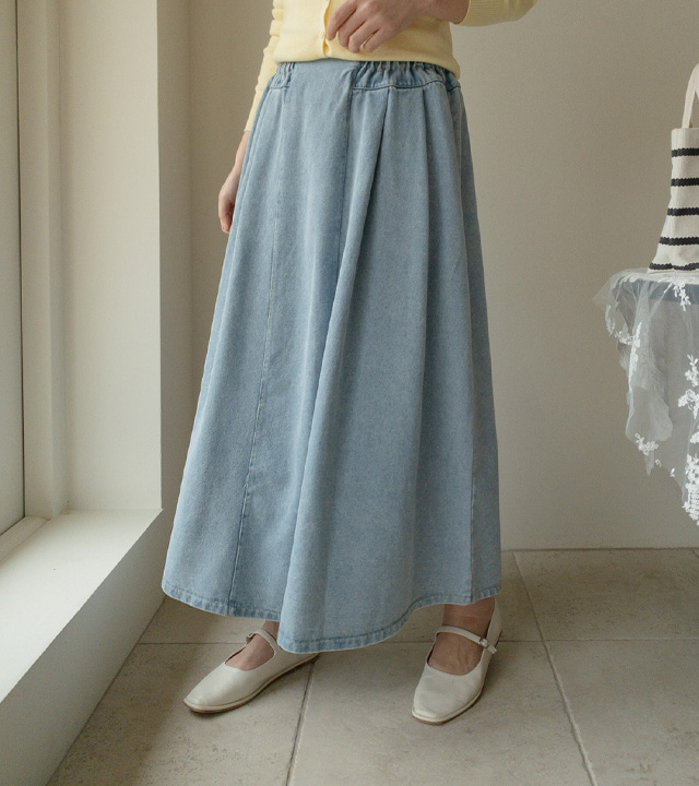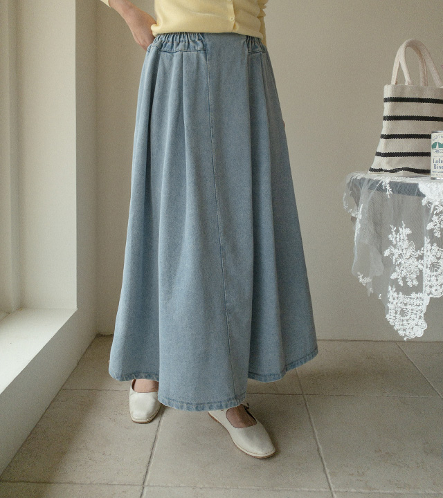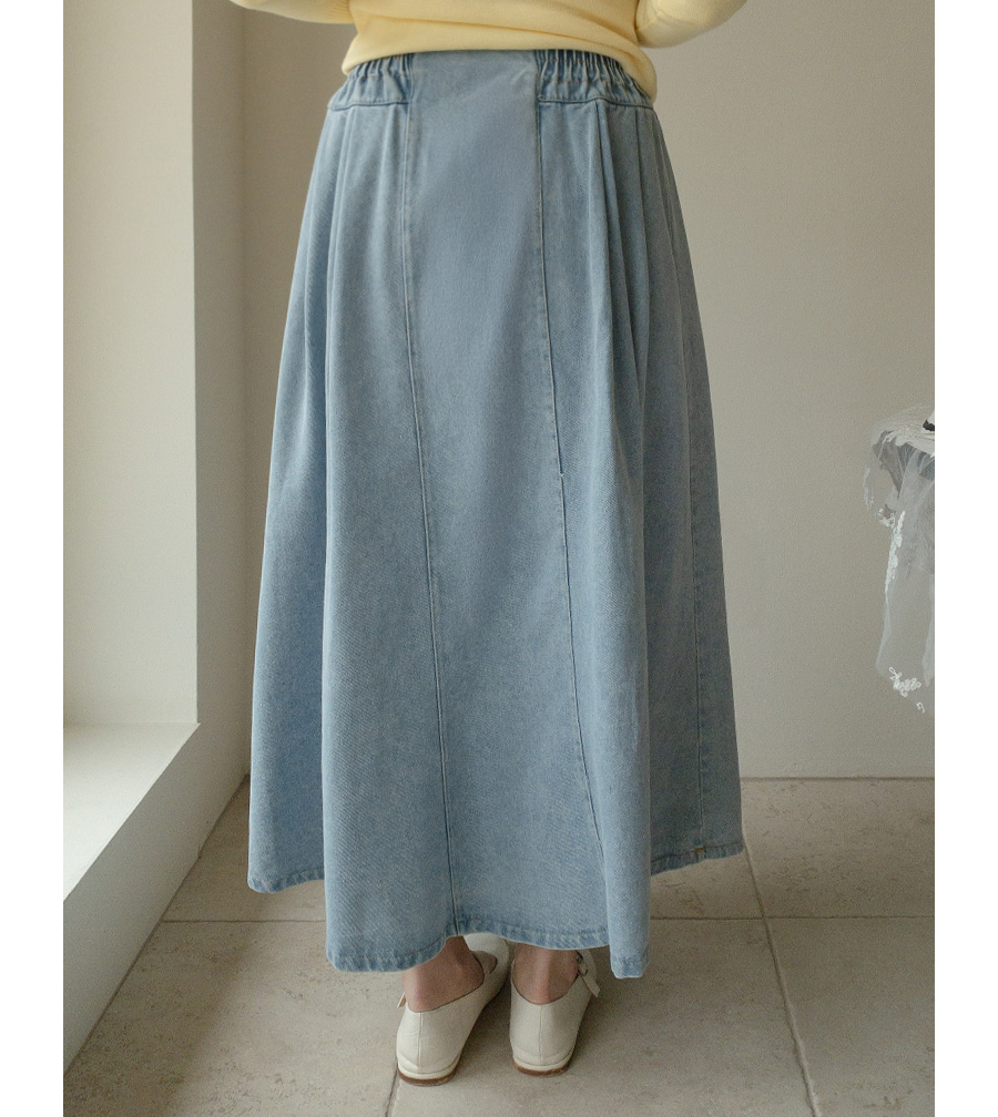 HOME > ALL > 데이브 핀턱 스모크 밴딩 데님 롱 스커트 [Free(55~66)]