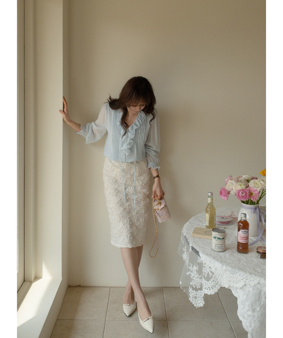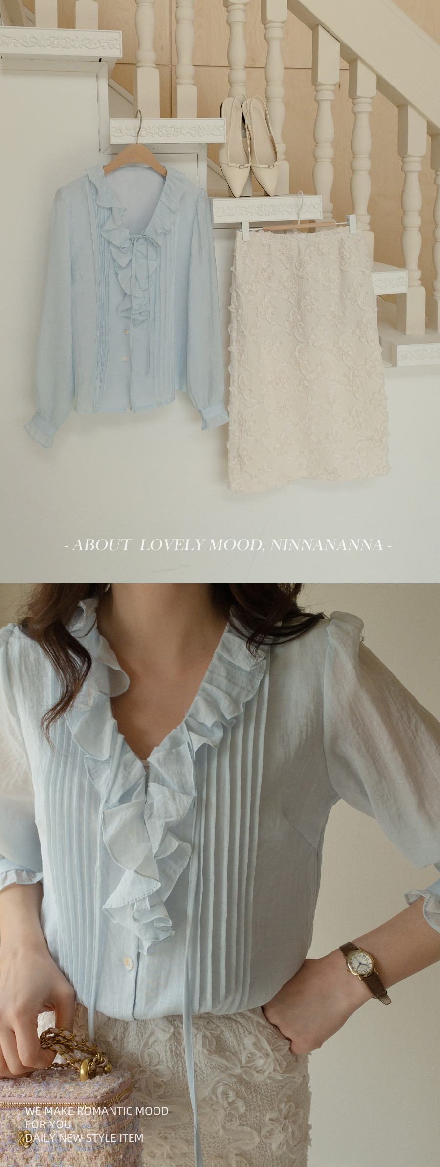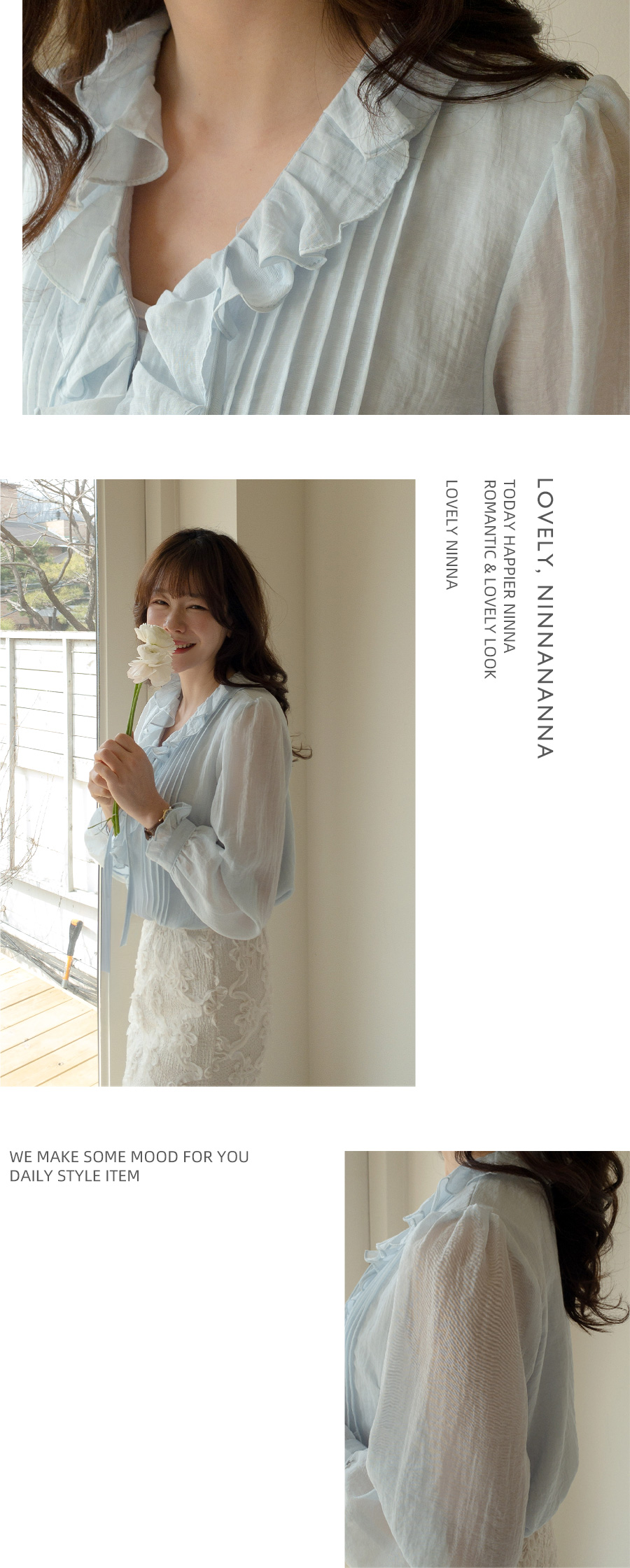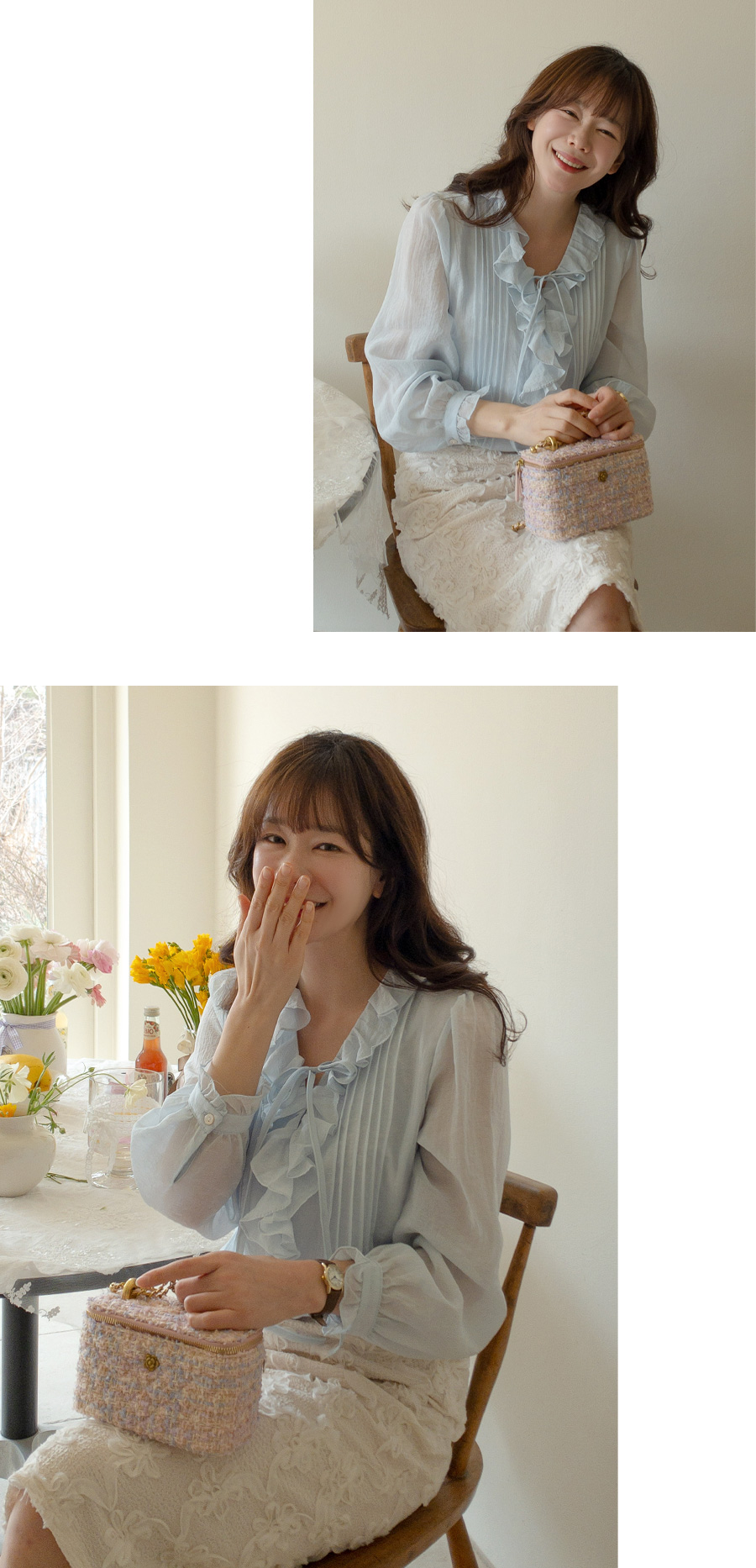 프릴과 핀턱 디테일이 더해져 입는 순간 로맨틱한 분위기가 완성되는 블라우스♡